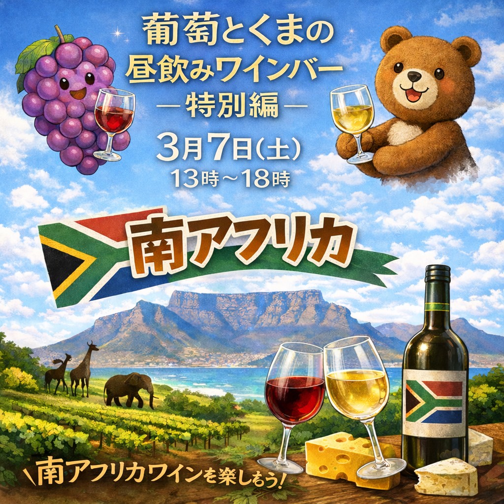 葡萄とくまの昼飲みワインバー特別編 テーマ「南アフリカ」